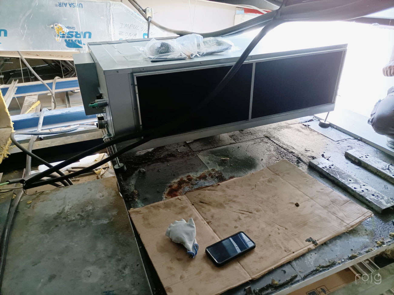 Nuestro equipo se encargó de sustituir el anterior equipo y equipar el nuevo Split Conductos adaptando los conductos de Climaver.