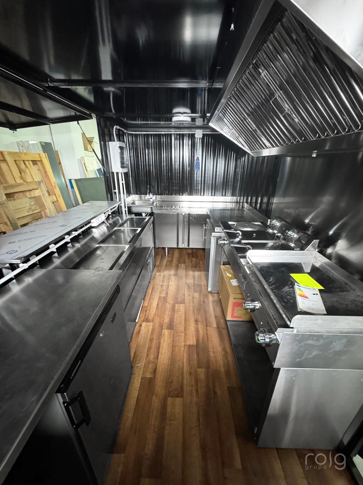 • Distribución Ergonómica: Cada elemento, desde el cuadro eléctrico hasta la máquina de charcutería, fue colocado estratégicamente para que el personal pueda montar un food truck funcional y moverse con rapidez y seguridad durante el servicio.