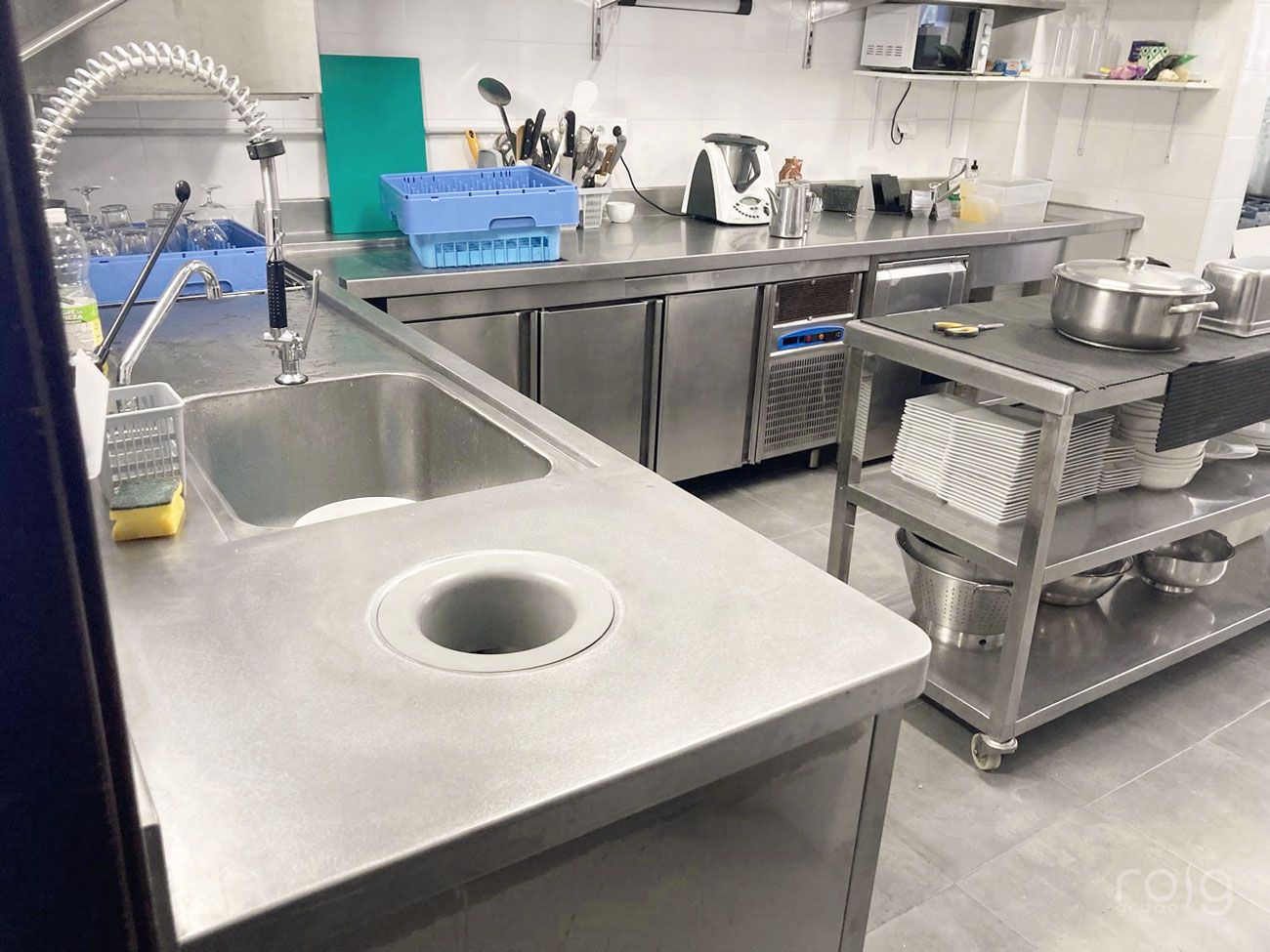El resultado es una cocina profesional completa y bien organizada. Por eso, cada equipo y cada pieza de carpintería inox tiene su lugar. Así, el trabajo del equipo es más fluido y los tiempos de servicio mejoran notablemente.
