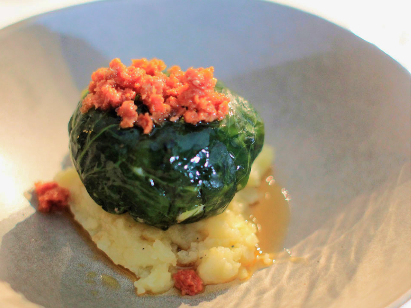 La cocina de Antonio es una cocina ecléctica, que mira al mar pero también a la huerta y que busca explorar en la realidad menos conocida de una gastronomía histórica gallega.